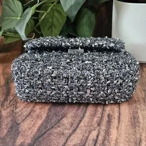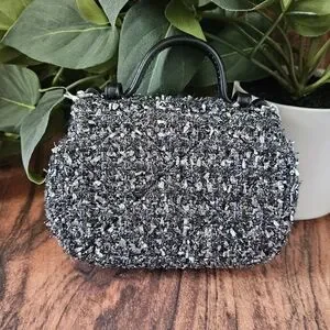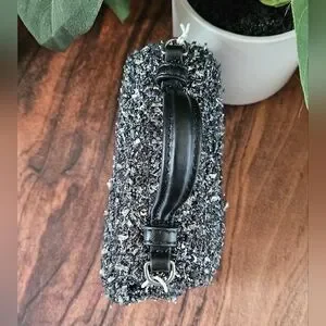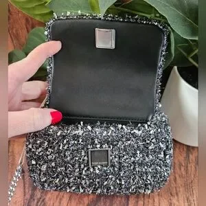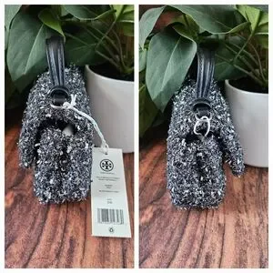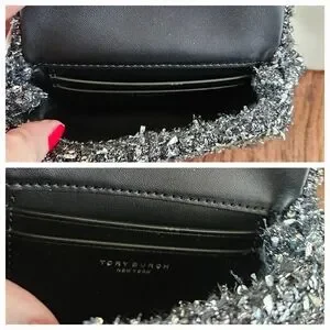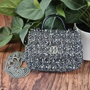 Tory Burch Willa metallic top handle 3 in 1 crossbody nwt nano bag Black multi silver tweed fabric magnetic closure, inside partially lined leather with 2 credit card slots top black leather handle. Can be used as a crossbody, shoulder or carry by handle. approximate 5"l x 4"h x 1 3/4"w
