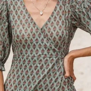 Daughters of India Zuri Wrap Dress NWT Size XS Sage
