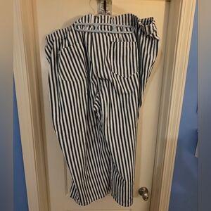 Stylish black and white striped plus size wide leg crop pants. Perfect for any occasion.