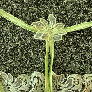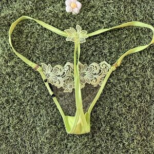 Honey Birdette Amelie Floral Thong. Lime green sheer thong with delicate floral lace design. Perfect for adding a touch of luxury to your intimate collection. Worn once for a photoshoot, tag cut off, added a photo of the receipt so you can see the size. In excellent condition. Size M