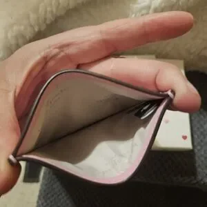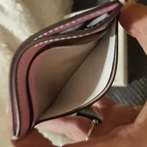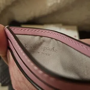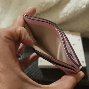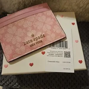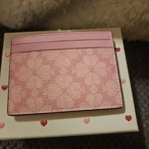 Stylish pink card holder by Kate Spade. Features a chic design with a subtle pattern. This is brand new in box and comes complete with tags and cardboard inserts. This is such a beautiful little card holder.