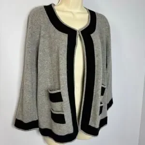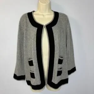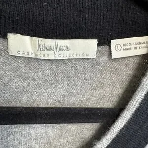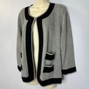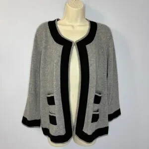 Neiman Marcus Cashmere Grey Black Trim Cardigan Sweater Feminist Luxury Womens L