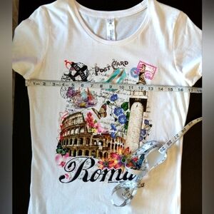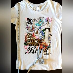 B&C COLLECTION Tee White Rome Italia Italy Graphic Short Sleeve Size Medium