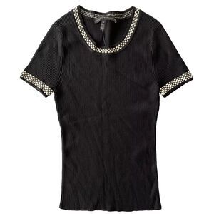 White House Black Market Women's Short Sleeve Shirt Size z S/P Dot Detail Collar & Cuff, Cable Knit, New With Tags.