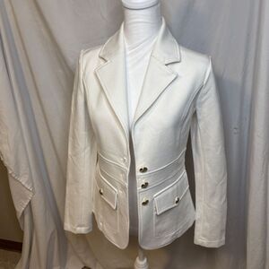 Joie Darryl White Blazer Jacket Womens Stylish Designer Gold Detail Collared