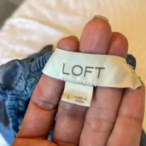 LOFT Smocked Chambray Ruffle Sleeve Top | Size Large