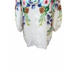 Kaktus Italy 100% Linen Floral Notched V Ruffle Neck Tunic Top Womens Large