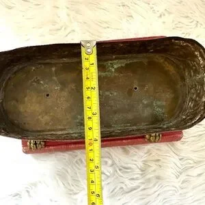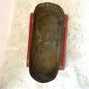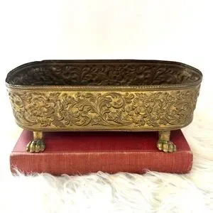 Measuring at a compact 10 inches in length, 3.5 inches in height, and 4 inches in width, this small yet heavyweight planter is perfect for adding a refined touch to your indoor or outdoor decor. Its claw foot design and copper-lined interior reflect the intricate workmanship of the period, making it an original piece that would be a prized addition to any collection.