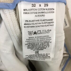 Dockers Signature Relaxed Fit Khaki Chinos 32” X 29”. Clean flat front with a relaxed fit that is a little fuller in the thigh. Has a straight leg and is made with cotton and elastin for a little bit of stretch that will keep its shape. No wrinkle with a permanent crease down the leg. Wash inside out.