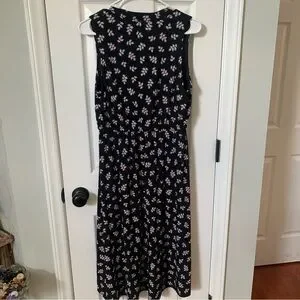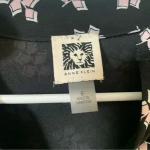 Anne Klein Sleeveless Dress w/Pockets Size 6 Lined Black w/Pink Print
