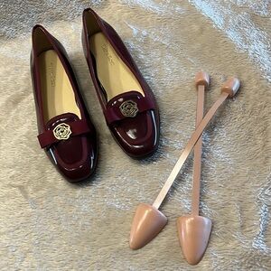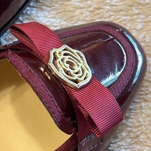Beautifully patent leather (considerably smooth fit) burgundy Gari flats with ribbon trim and gold tone rose charm. Rubber “T” front sole. Vintage pretty salmon pink in color shoe stretchers are included! *Blemish on bottom sole (marked for studio photo session~nothing that affects the fit or upper aesthetic of shoes). Size: 8M (In shoe sizing, "M" typically stands for medium width, which is considered the standard or average width for most people's feet. It's a baseline from which other width options like narrow (N) or wide (W). Posh Friendly Reminder: Sizes may vary depending on designer and/or brand. Should you have any questions, please do not hesitate to ask. Thank you for visiting my closet. 💐