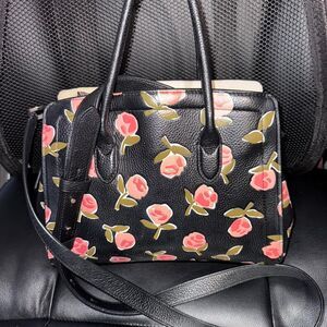 Kate Spade Pink and Black Rose Leather Satchel Handbag