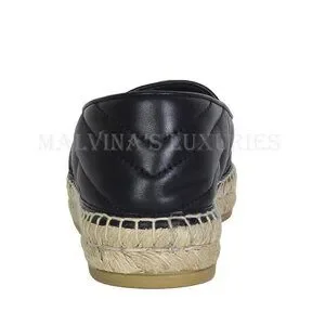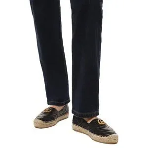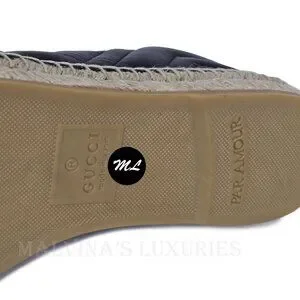 Unique Features: Black Matelasse Chevron Leather espadrille flats with Double G Logo hardware. Iconic Double G hardware on the front. Round Toe. Black Matelasse chevron leather. Cord Platform Materials made in Italy. Shoe constructed in Spain.