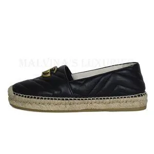 GUCCI SHOES FLATS MARMONT DOUBLE GG LEATHER ESPADRILLE sz 37 US 7
