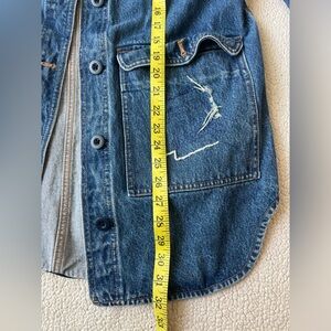 J. CREW OVERSIZED DENIM CHORE COAT SIZE SMALL WOMENS. THE RIGHT FRONT POCKET IS MISSING ITS BUTTON & HAS PEN MARKINGS ON IT / PLEASE SEE PHOTOS BEFORE PURCHASE. OTHERWISE EXCELLENT CONDITION. NO SIZE TAG SO I POSTED MEASUREMENTS.