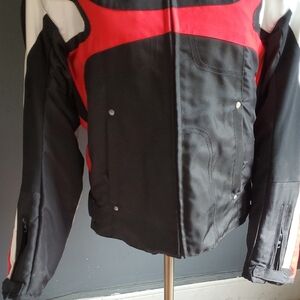 Arlen Ness Unisex Black and Red Motorcycle Padded Jacket Sz M