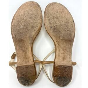 Chanel sandals, CC logo, designer sandals, flat leather sandals, thong sandals, summer fashion, resort wear, vacation shoes, made in Italy, luxury sandals, collectible Chanel, Karl Lagerfeld Era.