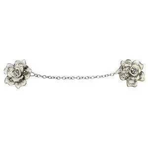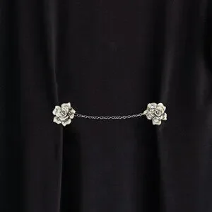 Featuring two delicate flower designs connected by a fine chain, this piece is perfect for keeping cardigans, shawls, or light sweaters in place while elevating your look.