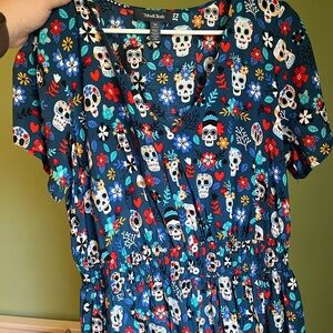 Colorful Skull and Floral Print Dress plus size ModCloth