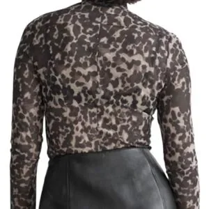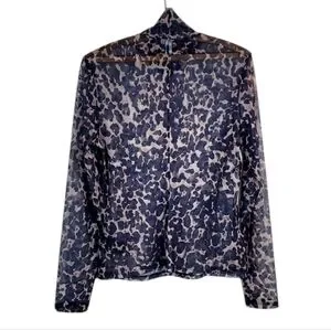 NWOT & OTHER STORIES High Neck Sheer Mesh Leopard Animal Print Top Medium