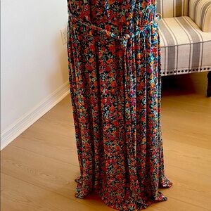 Embrace elegance with this stunning floral maxi dress. Perfect for any occasion, this dress features a beautiful blend of colors that will make you stand out. size 22/24 can be worn different ways 95%rayon 5% spandex Beautiful summer dress elastic waist, one of the string for the belt is broken but attached