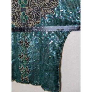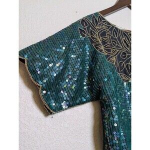Vintage Blue Green Sequin Silk Top Size Medium Party Y2K Formal Beaded Gatsby
