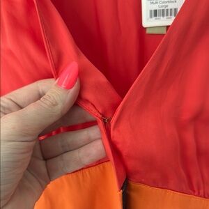 Vibrant and stylish, this maxi dress features a stunning combination of red, orange, pink, green, and navy. Perfect for any occasion, it offers a comfortable fit with a button-down front. Silky soft material. Hook-eye closure at bust.