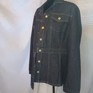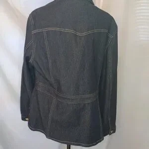 Evan Picone Dark Wash Stretch Denim Belted Jacket