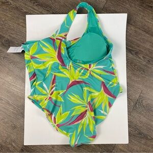 NEW Old Navy Swimsuit Women 3X Green Color Tropical One Shoulder One Piece Beachy