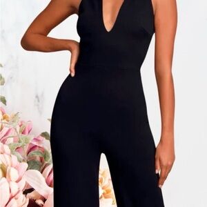 BB DAKOTA BLACK V-NECK CRISS-CROSS BACK WIDE LEG JUMPSUIT SZ 6