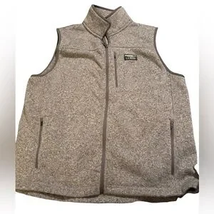 Stay warm and stylish with the L.L. Bean Men's Gray Sweater vest. Men’s size large. Muted gray camera it’s 100% polyester and machine washable Full zip, breast pocket, zipper and hand warmer zippers on both sides. It’s in great condition from a non-smoking home.
