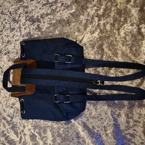 Y2K Vintage Blue/Green Canvas Mini Backpack with Suede