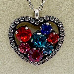 Rainbow Swarovski Crystal Heart Necklace – Multicolor Sparkle, Handcrafted gift