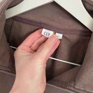 Embrace warmth and style with this GAP sweatshirt, featuring a cozy quarter-zip design. The rich mauve hue adds a versatile touch to your wardrobe, perfect for casual outings or relaxed evenings. Crafted for comfort, this sweater is an essential addition to your collection.