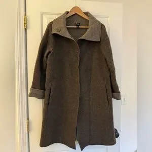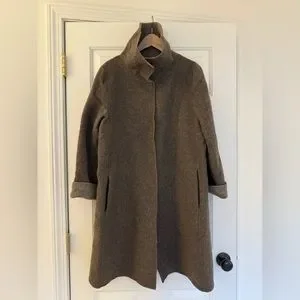 Eileen Fisher Small Alpaca / Wool Coat Jacket Brown Funnel Neck