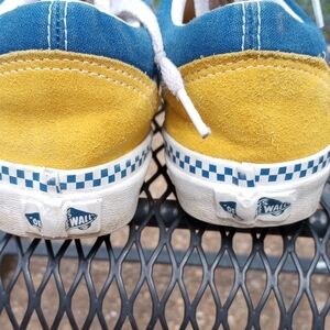 Vans Stylish sneakers with a vibrant blue canvas and yellow suede design. Features white laces and accents. Big girls Sz 3.5