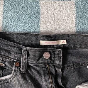 Trendy black Levis Low Pro Straight jeans with a classic fit. Perfect for any occasion.