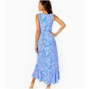 New Lillly Pulitzer Moana - High-Low Wrap Maxi Sleeveless Dress Size Large NWT