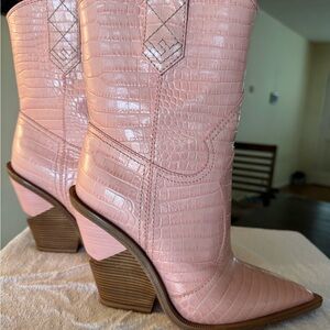 Rare pink Fendi cowboy boots. Step out in style with these chic pink croc-embossed boots. Perfect for adding a touch of elegance to any outfit. Can fit a size 8-8.5 in women’s.