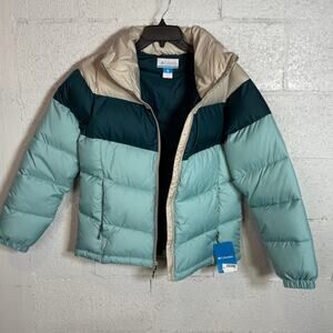 Columbia Women's Puffect colorblock Insulated Jacket Aqua Haze, Nigh Small $180