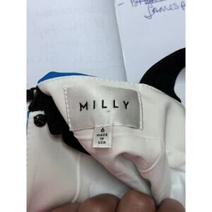 MILLY blue white orange abstract Lou Lou sleeveless knee length sheath dress