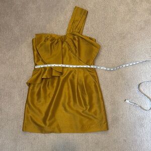 Step out in style with this elegant, gold one-strap dress. Features a large bow across chest. Worn once then dry-cleaned. Excellent condition!