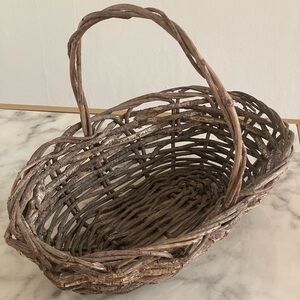 Vintage Large Wooden Woven Willow Twig Basket Primitive