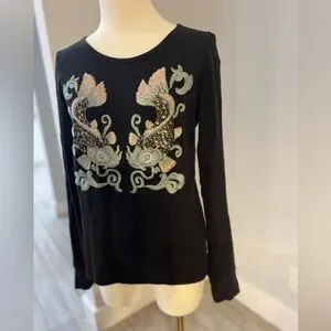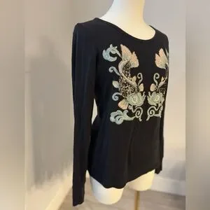 Black boho embroidered long sleeved tee