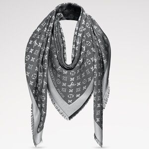 Ideal for everyday use, this luxuriously soft Monogram Denim shawl is subtle and very feminine. Entirely weaven in jacquard, it features the Louis Vuitton signature and the Monogram pattern.