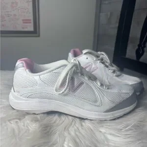 New Balance 496 womens walking running shoes pink grey white 7.5 dad shoes