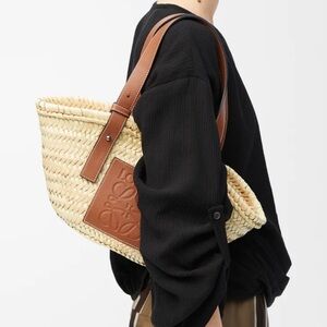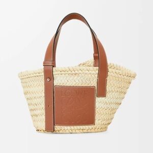 Discover the Loewe Tan Basket Bag, crafted with palm leaf and calfskin for a stylish and durable accessory. Perfect for any occasion.