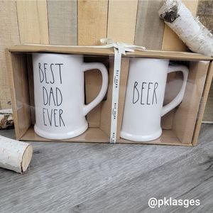 Rae Dunn gift set of 2 beer stein mugs. 23.6oz mugs. One mug BEST DAD EVER and the other mug BEER. New with tags.