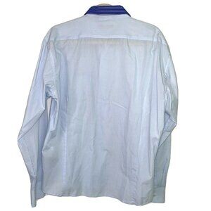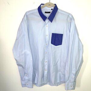 Oleg Cassini Skinny Shirt XL Mens Vintage Cotton Blue Pink Striped Pocket Collar
