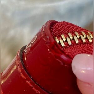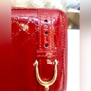 Gucci Guccissima micro GG Spur Belted Patent Leather Red Wallet W/ Satin Dustbag